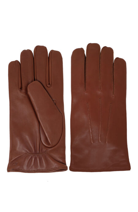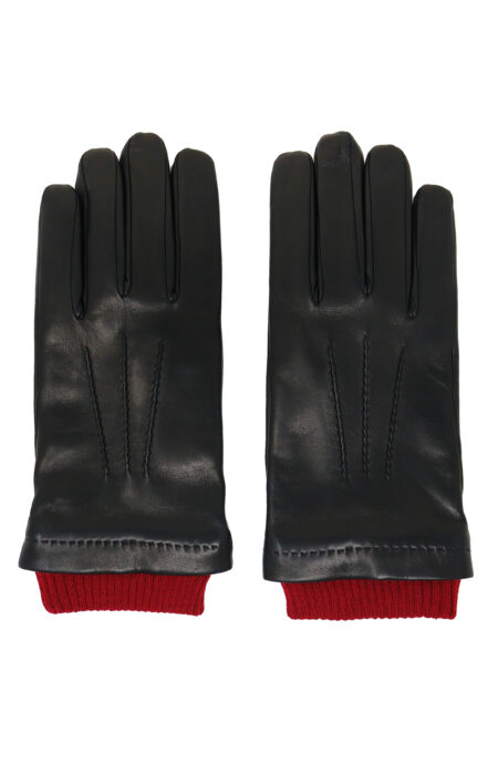 Men’s glove 100% lambskin lined in pure cashmere. Those leather gloves have a fantasy sewn in relief on the back side while on the bottom are slightly curled to ensure better grip . The knit cuffs give a touch of color but also garantie higher confort.